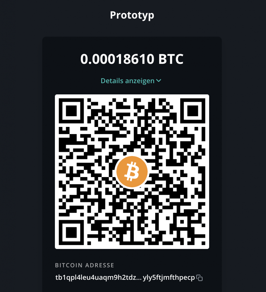 3. Sie sehen nun einen QR-Code, der mithilfe der externen Wallet von Blockstream gescannt werden kann. Optional können Sie auch die Empfänger-Adresse kopieren.