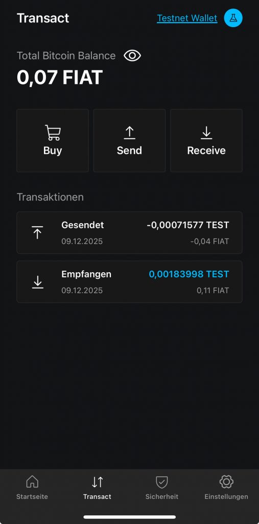 Die Zahlungen erfolgen in einer Testumgebung bzw. im Testnet – es fließen keine echten Gelder.