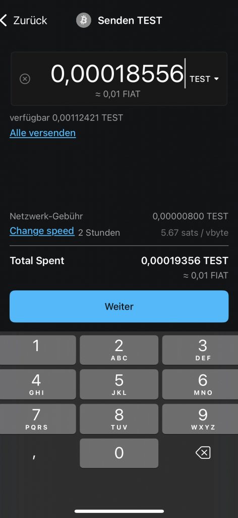 - Fahren Sie nun von dort fort, befinden Sie sich schon eingeloggt in der Wallet für die Testzahlung