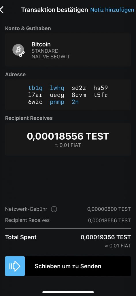 7. Schieben Sie unten nun den Regler nach rechts, um die Zahlung zu bestätigen und abzusenden.